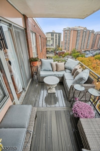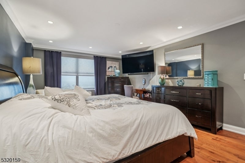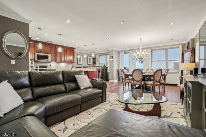 Discover luxury, comfort, style, and convenience in this beautifully appointed penthouse 2-bedroom, 2-bathroom condo with higher ceilings with recessed lighting at the coveted Executive House in Hackensack. Perfectly situated in the heart of Hackensack, this sun-drenched residence features a spacious open layout with walls of windows, flooding the home with natural light and offering stunning views, including glimpses of NYC, from your private terrace, often including rainbows. The modern kitchen is equipped with stainless steel appliances, granite countertops and abundant cabinet space ideal for both everyday living and entertaining, plus a breakfast island and/or bar area. Both bedrooms offer generous proportions, and the bathrooms are tastefully updated with contemporary finishes; one bedroom includes a unique washer/dryer for your convenience. Enjoy resort-style amenities in a serene, park-like setting spanning 3.7 acres. The Executive House offers; 24-hour concierge & doorman service, secure package handling, as well as in ground swimming pool, private park, on-site building management and storage unit; 1 outside parking space ($) & overnight guest parking. HOA includes heat, electric and water, dramatically reducing your utility costs. Centrally located just minutes from NYC trains, major highways, shopping, and NYC-bus on corner, this is luxury, lifestyle, and location all in one. A deeded one-car parking spot in the garage is also available for separate purchase.