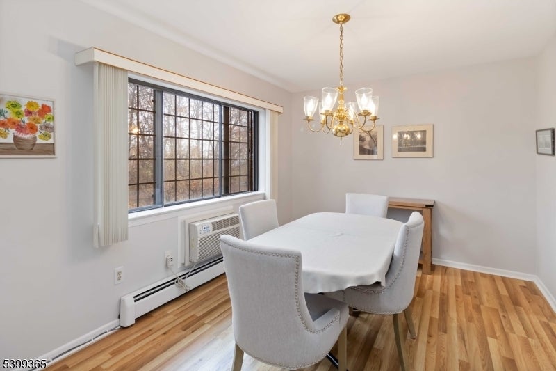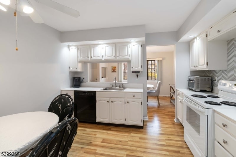 Nestled in a peaceful wooded setting, this stunning ground-floor 2 bedroom, 2 full bath Foxwood unit offers the perfect blend of comfort and convenience. As you enter from the quaint front porch, you're welcomed into a spacious, light-filled living area where large windows frame serene views of the surrounding greenery. The open floor plan flows seamlessly from the living room to the dining area, creating an inviting atmosphere ideal for both relaxing and entertaining. Kitchen features crisp white cabinetry, a stylish new backsplash, and plenty of storage. Both bedrooms are generously sized. The primary suite includes a private ensuite bathroom with modern fixtures and excellent storage. The second bedroom is equally versatile...perfect for guests, a home office, or both, offering easy access to the second full bath. This ground-floor unit also boasts an expanded in-unit storage closet and a 1-car garage with interior access, providing added convenience. Located just minutes from local shops, restaurants, train, and major highways including Route 10, 287, and 80, this condo offers the best of tranquil living with everyday accessibility. Foxwood's community amenities include a pool, tennis courts, and basketball court and the HOA covers heat, water, sewer, and garbage, making this home an exceptional value. A true gem combining modern ease with serene, wooded surroundings and a great, accessible location.