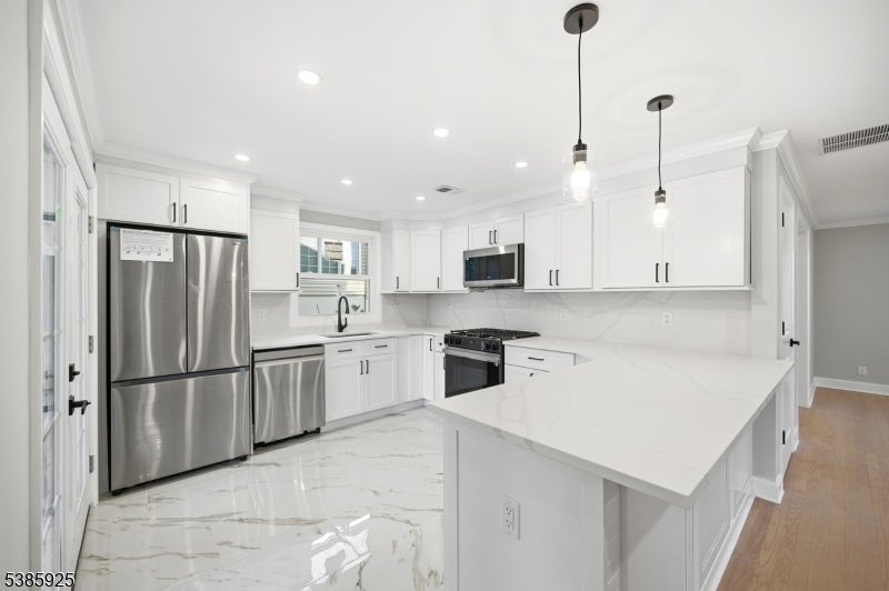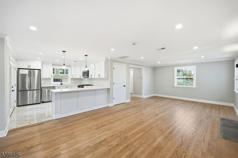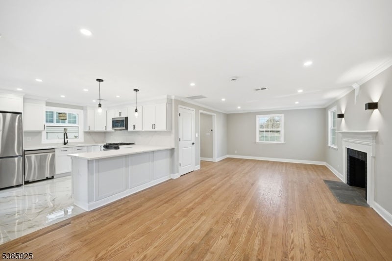Welcome to this beautifully renovated 4-bedroom, 4.5-bath Colonial set in Livingston's highly sought-after Collins neighborhood. Completely updated in 2025, with all new electrical, HVAC Plumbing and several new windows, this home offers modern comfort and peace of mind throughout.The spacious open-concept main level features a bright living/ Family room with a wood-burning fireplace and an open dining area with sliders to a large deck overlooking the private backyard ideal for entertaining. A stunning designer kitchen outfitted with stainless steel appliances and shaker cabinetry. The first floor also includes a convenient Office/ bedroom with an en suite full bath, plus an additional powder room.Upstairs, you'll find three generously sized bedrooms, including a serene primary suite with double closets and a newly finished spa-like bathroom.A fully finished basement adds even more versatility, featuring a recreation area and a multipurpose room-perfect for guests, a home office, or a playroom and a full bath.Additional highlights include an attached garage, fully fenced yard, and expansive deck offering the perfect outdoor retreat. Situated in a prime location close to top-rated schools, Cooperman Barnabas Hospital (less than a mile away), transportation, major highways, shopping, and more.