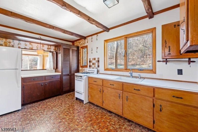 This 2-bedroom ranch-style home sits on a beautiful one-acre lot and is perfect for the buyer who loves natural sunlight and is excited to make a home their own. A sun-filled sunroom, located directly off the living room, creates a seamless space for relaxing or entertaining while enjoying views of the property. The living room features a cozy wood-burning stove and a sliding glass door that leads to the back patio, offering an easy indoor-outdoor flow. With its one-level layout, spacious yard, and solid footprint, this home presents a wonderful opportunity to personalize and create your ideal living space. Enjoy the peace and privacy of a generous lot which includes stable/out building and a seasonal water view.