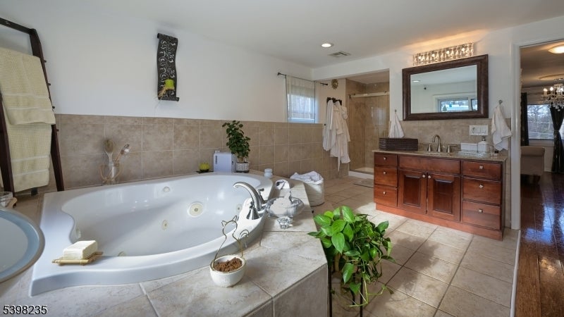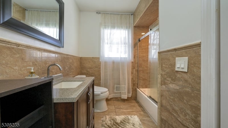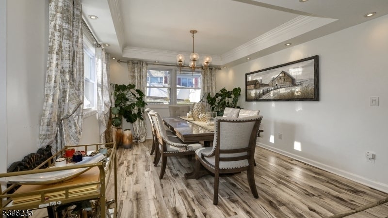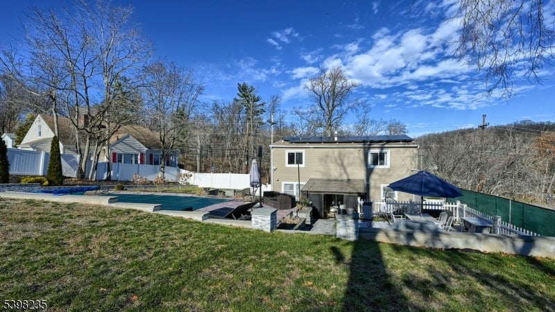 Meticulously renovated in 2017,with charming front porch, offering 4 bedrooms and 2 full baths. Inside, the sunlit living room with its designer feature wall sets the tone, opening to a gorgeous gourmet kitchen boasting custom cherry cabinetry, granite counters, and stainless steel appliances, seamlessly connected to the dining room for easy entertaining. A main floor bedroom and beautifully updated full bathroom offer ideal flexibility for guests, multigenerational living, or a home office. A sun-filled three-season room overlooks the expansive, terraced backyard with multiple patios and a large in-ground pool heated by a solar cover your own private retreat. The second floor hosts a generous primary suite with walk-in closet and spacious bath with jetted tub and separate shower, plus two additional bedrooms and great storage. The crawl-space basement provides additional storage and access to the 1-car garage with laundry. Excellent parking with two driveways and front parking area. Major 2017 updates include roof, windows, doors, interior/exterior renovations, and leased solar panels at approx. $104/mo. Added perk: option for Wayne Schools. Close to shopping, transit, and William Paterson University this home blends comfort, charm, and convenience.
