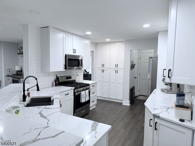 Beautifully updated townhome in sought after Liberty Green featuring an open-concept living area filled with natural light, a gas fireplace and sliders to a trex deck and patio overlooking a private wooded yard. The stunning white kitchen offers quartz counter tops, vinyl flooring throughout and convenient access to the first floor laundry room and attached garage. Upstairs 3 spacious bedrooms, including primary suite with a walk in closet and full bath. The additional bedrooms feature ample closet space and another full bath. A full finished basement provides extra living space, storage space and ideal for a home gym. Move in ready and ideally located near the direct train to NYC/Traction Line bike and walking path right outside your door. Path to Madison Hotel and close to Rt 24 and Rt 287. Close to several town centers