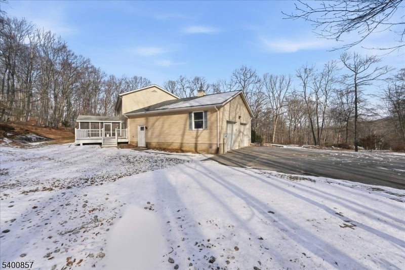 Escape to your own private 3-acre sanctuary at 611 Snake Den Road; an elegantly renovated retreat surrounded by nature, yet moments from the conveniences of West Milford. This beautifully updated 4-bedroom home features a brand-new 4-bedroom septic system, a high-end designer kitchen with quartz counters and premium appliances, and two fully renovated bathrooms with modern finishes. The main level offers generous living and dining spaces, perfect for entertaining, along with access to a spacious back deck ideal for outdoor dining, gatherings overlooking your private landscape. A large screened-in porch provides year-round enjoyment and an effortless indoor-outdoor lifestyle. Upstairs, four comfortable bedrooms offer flexible living options, and the full lower level with high ceilings has a second stair leading directly to the garage and provides additional opportunities to customize and storage space. The oversized 2-car garage and long private driveway add convenience and privacy. With 3 peaceful acres, stunning natural surroundings, a completely refreshed interior, and major upgrades already completed, this move-in-ready home is the perfect blend of luxury, comfort, and mountain living.