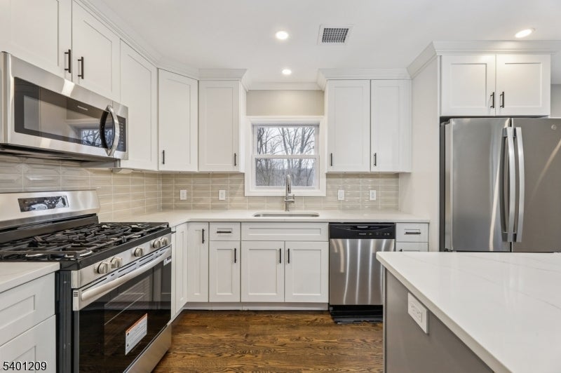 Modern fully renovated inside and out split level on an acre of the lot. Offers brand new septic system. Living room with electric fireplace, eat-in kitchen with ss appliances and island, slider door to the deck, 3 bedrooms and 2 full bathrooms, rec room, laundry and direct access to the yard. Central a/c, brand new windows, roof, hardwood floors, recessed lighting, 2 car garage. Enjoy open backyard with a entertaining deck! Great location, stylish finishes this home is a must-see!