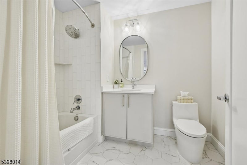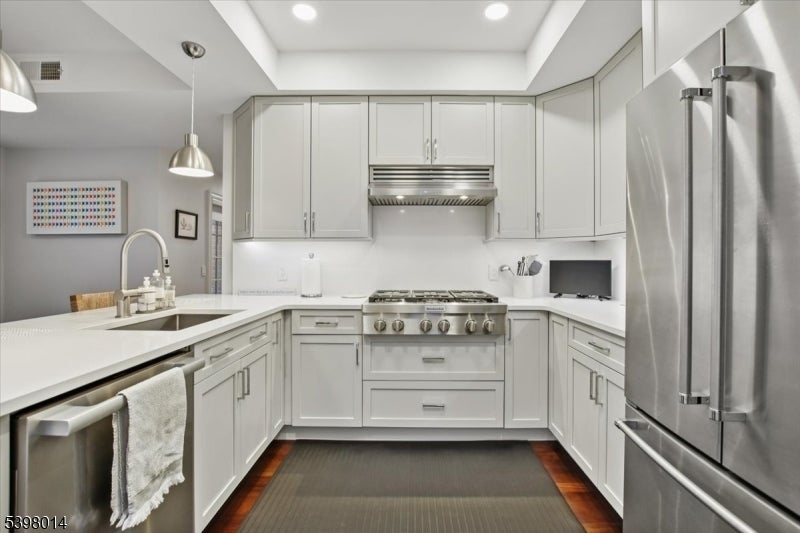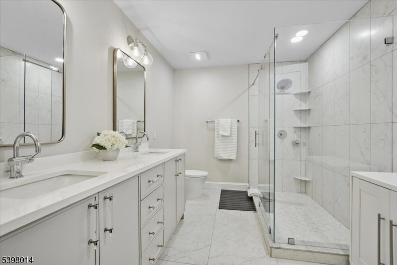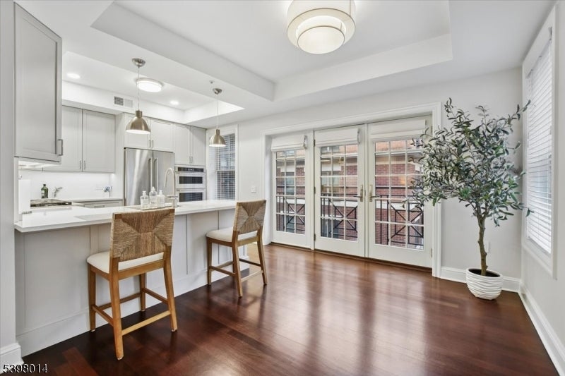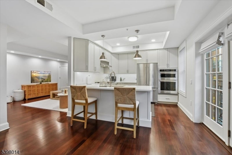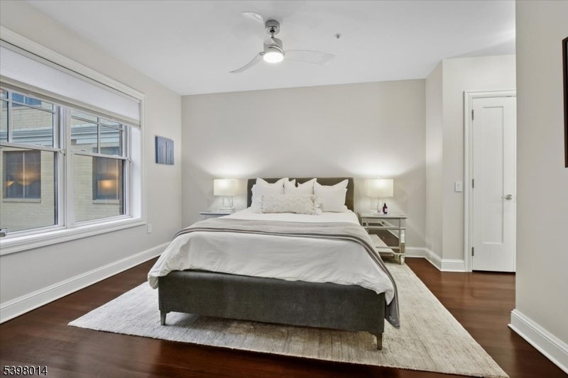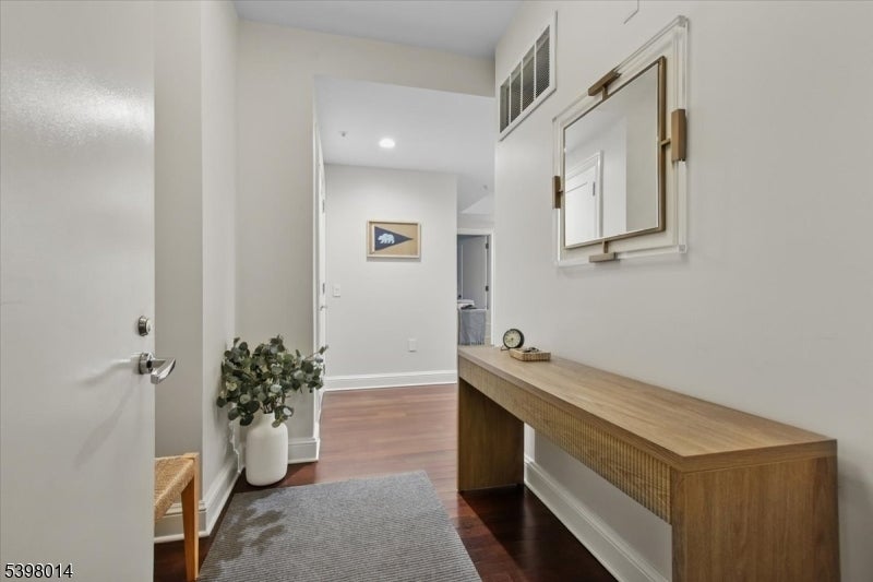 Located in Morristown's most coveted downtown address, this fully renovated, move-in-ready 2-bedroom/2-bath corner residence offers sophisticated living in one of the area's only full-service buildings. Perched on the 5th floor and overlooking the courtyard, every detail has been thoughtfully redesigned with a focus on light, high-end finishes and modernization. Throughout the unit, 9-foot ceilings, smart-home features, upgraded electrical and lighting, refinished hardwood flooring and custom window treatments create a light-filled and inviting space for living and entertaining. A private balcony and Juliet balcony make this a unique property not to be missed. The gourmet kitchen has been completely redesigned with new stainless steel appliances, custom cabinetry, new countertops and full backsplash. The spacious primary suite features a walk-in closet, additional linen storage, and a beautifully renovated en-suite bath with an oversized walk-in tile shower and double vanity. The second bedroom is ideal for guests or a home office, with its own renovated full bath. Fully renovated units in this building are rare; here the heavy lifting has been done for you. Enjoy maintenance-free living with premium building amenities: concierge service 365 days/year, secure gated and assigned parking (2 spaces), onsite fitness center and an elegant club and billiards room. All just steps from Morristown's vibrant dining, shopping, the Green, and NYC direct transit.
