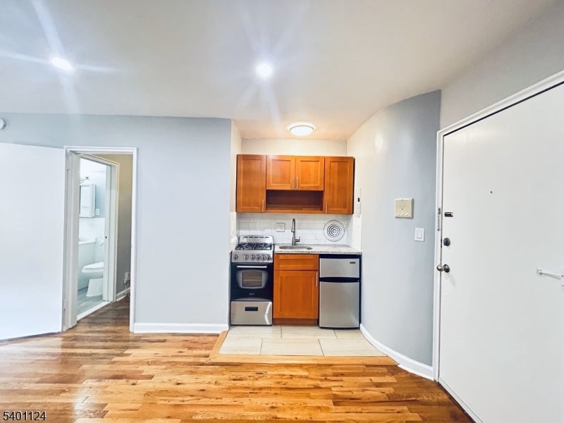 Beautifully updated studio apartment, just minutes from downtown Montclair's restaurants, shopping, cafes, and train service to NYC. This bright and efficient 450 sq. ft. space features a modern grey-and-white kitchen with brand-new appliances, a refreshed bathroom, and thoughtful finishes throughout. On-site parking available at $80/month. 450 sq. ft. open-concept layout Newly renovated kitchen with new appliances. Grey and white modern kitchen + bathroom design. AC wall unit provided by landlord. Fresh flooring and neutral paint throughout.