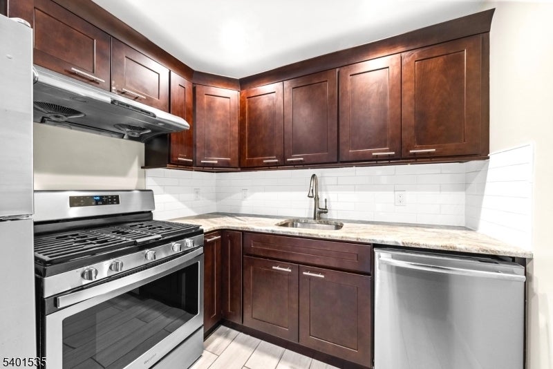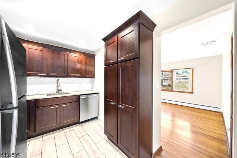Recently updated two bedroom, one full bathroom unit features a beautifully designed, brand-new kitchen with high-end stainless steel appliances and modern finishes. The living room features an expansive window that floods the apartment with natural light, highlighting the hardwood floors throughout the unit. Primary bedroom includes a large & spacious private balcony perfect for relaxing.New additions include a brand-new in-unit washer and dryer, as well as a brand new Central Air Unit. Residence is surrounded by an array of amenities. Prime location near Brookdale Park with activities, paths, tennis courts, and seasonal community events, along with nearby shopping, dining. Conveniently located near Garden State Parkway, Rts.3, 46, & 80 and just minutes away from nearby bus stop and several train stations offering easy access for commute to NYC.