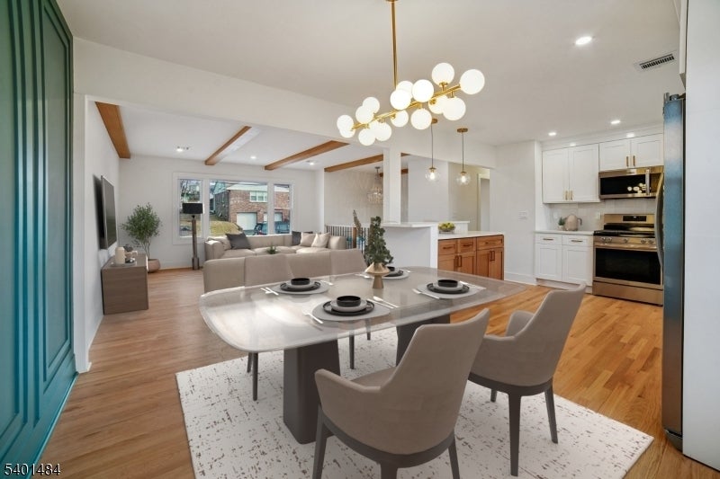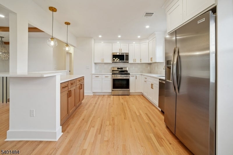 This beautifully renovated Bi-level home offers a smart, flexible layout across two spacious levels, designed to fit today?s lifestyle. The main floor features bright living and dining spaces, a brand-new eat-in kitchen with quartz countertops, breakfast bar, and stainless steel appliances, plus a private primary suite, two additional bedrooms, and a new main bath. The ground level adds versatility with a fourth bedroom, a full bath, a spacious family room opening to an outdoor deck, and an oversized two-car attached garage. With four bedrooms, three full baths, central heat and air, a new roof, and all-new bathrooms, this move-in-ready home is ideally located just steps from NJ Transit bus service and minutes to Route 280. Near to many shops and restaurants.