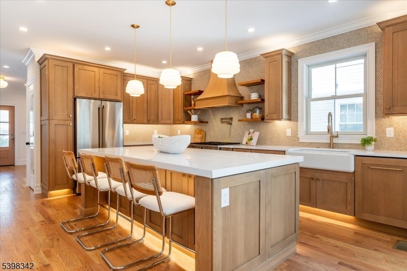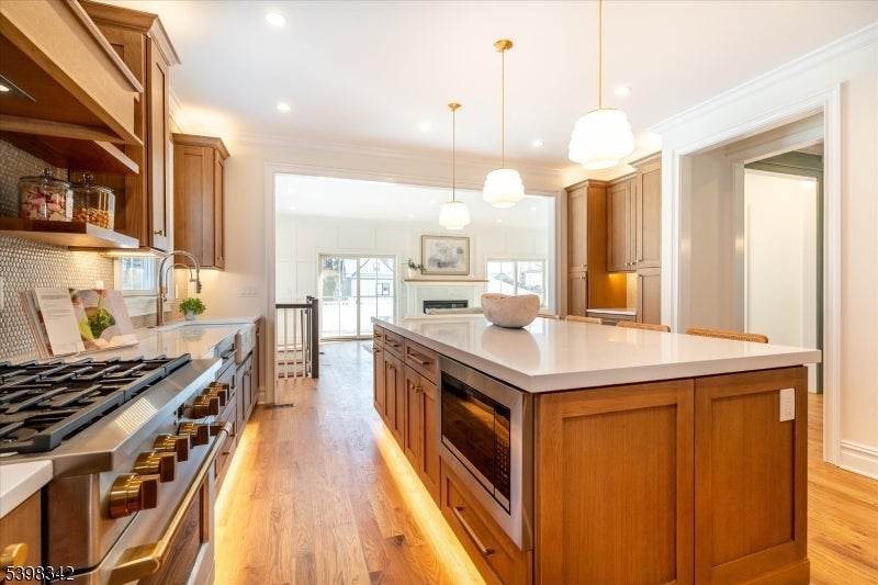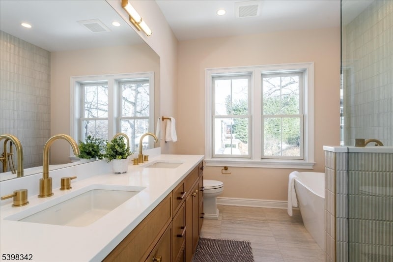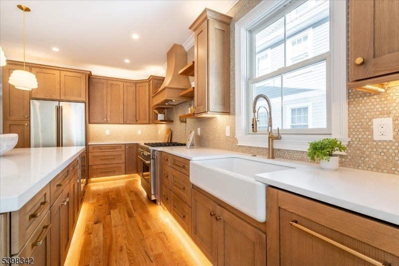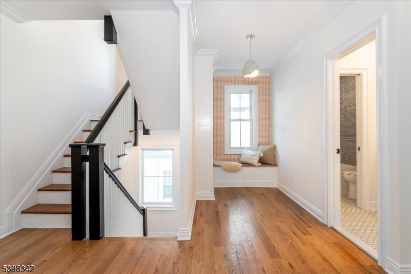 Another exceptional VG Builders renovation perfectly timed for the holidays!! This beautifully renovated Victorian is ideally located close to Walnut street village coffee shops, restaurants, boutiques, Farmers market and NYC midtown direct train. Completely redone from top to bottom with all new systems including electric, plumbing, roof, siding, Andersen windows, 3 zone hvac, flooring, kitchen and baths- offering a true new-construction feel with timeless architectural charm.A gracious open front porch welcomes you into a light-filled home with an ideal floor plan for todays buyer. Highlights include a mudroom with built-in storage, a custom kitchen with quartz center island, farmhouse sink, pot filler, high end stainless appliances, ambient and toe kick lighting, and a great room with gas fireplace. Dining room features a coffered ceiling, wet bar with wine fridge, decorative fireplace, and a stylish first floor powder room.The primary suite offers vaulted ceilings, a luxe bathroom with radiant heated floor, custom closet ,and private balcony overlooking the level, fenced, private backyard with new deck. Four bedrooms and 3 full baths on second floor with laundry and cute as pie wallpapered reading nook, 2 additional bedrooms plus full bath on third. Finished basement with rec room, powder room and bonus space. New garage with electric door. Thoughtfully designed, impeccably finished , and perfectly located- 63 Montclair Avenue offers turnkey living at its finest!