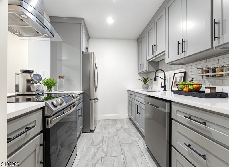 Modern Comfort & Prime Location!Beautifully renovated, Sort after first-floor condo offers the perfect blend of style and convenience. Featuring 2 spacious bedrooms and 2 full baths, including a private primary suite with en-suite bath and walk-in closet, this home is designed for easy, contemporary living.The bright, open-concept living and dining area flows seamlessly into a fully updated kitchen, showcasing elegant cabinets and countertops, plus sleek stainless-steel appliances stove, refrigerator, and dishwasher included. Enjoy the practicality of a dedicated laundry room, pantry closets, and hardwood-style laminate floors throughout, combining elegance with low-maintenance appeal.Step outside to your own private balcony, two assigned on-site parking spaces for ultimate convenience. BONUS *comes with an assigned storage unit in the basement.Perfectly situated near NYC transportation, the Silver Light Rail, shopping malls, and Clara Maass Hospital, with quick access to the Garden State Parkway (2 minutes) and Route 21 (5 minutes).This move-in-ready gem delivers the modern living you've been waiting for schedule a showing today!