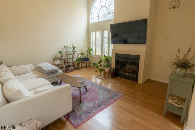Move-in ready, multi-level end unit in the most sought after Crestmont Highlands section of the entire Hills! Adjacent to wooded park lands, plenty of light fills this one bedroom, one bathroom, with flexible loft space, and one car garage below with separate entrance. Welcoming you in with a brand new exterior fiberglass porch (2025), with room for relaxing outdoors. Well maintained, open floor plan, featuring a vaulted ceiling living room with huge windows, built-in shutters, and wood burning fireplace. Nicely proportioned dinette area with several windows and an open view into kitchen. New outlets/switches in the interior (2025), plus new recessed lights in 3-sided kitchen with ample granite counter space and storage. Includes a range, microwave, dishwasher, full-sized refrigerator, tall pantry cabinet, and garden window, perfect for plants. Additional storage under the stairs, up to the huge loft above with a closet for storage/utility access, and a sun-filled skylight. Master bedroom is nicely proportioned with a new ceiling fan, linen, and walk-in closet, plus dressing area with a separate sink. Full bath has a large counter and a tub/shower with a nearby pantry/storage closet. Washer/dryer are included. Convenient for commuters, with proximity to 287, 78, and 202/206. Enjoy access to everything the Hills has to offer, including the pool, clubhouse, jogging/biking paths, tennis courts, gym, and playgrounds. No restrictions on owner occupancy, great for investors!