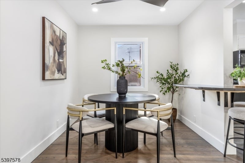 Location, Location, Location! This beautiful, move-in ready four-bedroom Cape is situated on a corner lot in the highly desirable town of Clifton, right on the Nutley border. Commuters will love the convenience, with easy access to Route 3, the Garden State Parkway, and NYC buses and trains. The main level features two bedrooms, a spacious living room with a wood-burning fireplace, a formal dining room, and an updated eat-in kitchen with a center island, new laminate floors, tile backsplash, and stainless steel appliances. A renovated full bath and access to the backyard complete this level. Upstairs, find two more good-sized bedrooms and another renovated full bath. The full finished basement extends your living space with a large family room, dry bar, wine cellar, laundry room, and storage/utility space, all with beautiful epoxy floors. Enjoy hardwood floors, recessed lighting, newer HVAC, and a private backyard perfect for gatherings. A one-car garage and parking for three additional cars in the driveway ensure convenience. All appliances stay, including the basement fridge. Home has been professionally staged. Room sizes are approximate.
