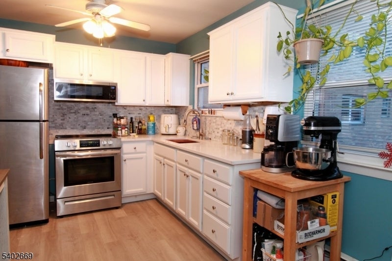 Tastefully renovated first-floor condo featuring an updated eat-in kitchen with white cabinetry, stainless steel appliances, modern finishes, and updated vinyl plank flooring throughout. Bright, open living/dining layout, large bathroom, walk-in closet, with front and rear entrances create a quiet, low-maintenance lifestyle. With a 1.5 car garage directly below for easy access to the rear entrance. Set against a wooded backdrop in a pet-friendly community with convenient access to Routes 80 and 15, Rockaway Mall, ShopRite, Costco, top rated restaurants, and much more! Laundry available in separate building within the complex. Water included in HOA fee.