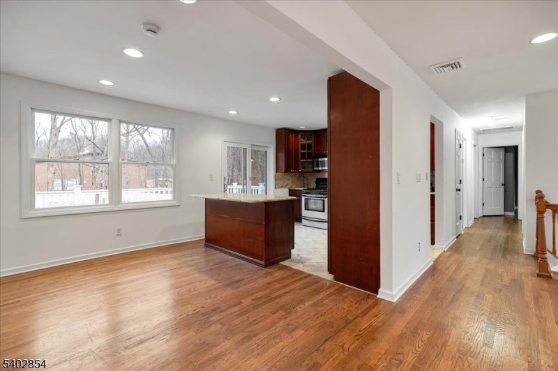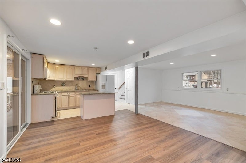 Welcome to this spacious and thoughtfully expanded bi-level, set on a generous, flat, fully fenced yard ideal for everyday living and entertaining. A distinctive stucco exterior and paver driveway add curb appeal, while recent updates including refinished hardwood floors, fresh interior paint, and a fully renovated bathroom make this home truly move-in ready. The flexible layout offers four bedrooms, two and a half baths, and two full kitchens, providing exceptional versatility for hosting, extended stays, or creating dedicated work and living spaces. The upper level features a bright open living and dining area, an updated kitchen, and access to a large deck overlooking the private backyard. The expanded primary suite includes an en-suite bath and space for a sitting area or home office. The lower level offers a cozy family room with fireplace, a second full kitchen with dining area, additional flexible space for an office or den, a large laundry area, and direct access to the attached one-car garage. Optional lake membership allows for seasonal swimming, kayaking, and community events just minutes away. This well-maintained home delivers space, flexibility, and lifestyle in a setting you'll love.