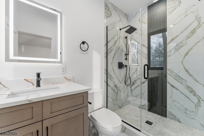 Brand New Construction by NJGCB, a leader in Modern Architecture and Design. HOME UNDER CONSTRUCTION - WORK WITH BUILDER TO SELECT FINISHES. Contemporary Style meets Luxurious Living in this stunning Custom Smart Home with over 4,600 sq ft of livable space spanning three levels. An Impressive Home with Grand Foyer, Floor to Ceiling Windows & Modern Glass Staircases. First Floor w/10ft Ceilings, Formal Living Rm & Formal Dining Rm w/ Butler's Pantry. 2-Story Family Room w/ 18ft Ceilings, Gas FP & Sliders leading to Outdoor Entertaining, including Deck, Covered Paver Patio and Stone Gas FP. A thoughtfully appointed Gourmet Kitchen w/ High End SS Appliances, Walk-in Pantry, Custom Cabinetry & Large Island w/Quartz Waterfall. Private First Floor Guest Suite w/ Bedroom & Full Bath. Mudroom & Powder Room complete first floor. Second Floor w/9ft Ceilings includes a Luxurious Primary Suite w/tray Ceilings, Private Balcony, Custom WIC's & Spa Bath w/soaking tub, Heated Floors, Dual Vanity & Water Closet. Three Large Guest En Suite Bedrooms, Separate Home Office & Laundry Room. Finished Walk-out Basement w/ 9ft ceilings, Bedroom, Bath, Media Room w/ Soundproofing & Speakers, Rec Room w/ Wet Bar & Appointed Gym w/rubber flooring & mirror wall. Landscaping includes Sod, Irrigation System, 6ft Privacy Fence, BBQ Gas Line. Plenty of room for Future Pool. May 2026 Completion. Pictures are from 47 Falcon Road which has similar layout and finishes.