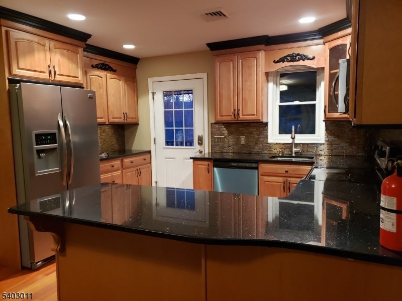SEPARATE ENTRANCE, FENCED IN GARDEN IN LARGE YARD! FANTASTIC 2nd Floor Apartment! 1 BEDROOM PLUS 1 SMALL ROOM/OFFICE, Updated Kitchen, Living Room, Bathroom, Deck (entrance) and YARD USE! Tenant pays utilities. Fiber Optic available! Hardwood Floors, Kitchen with Stainless Steel Appliances and granite countertop/breakfast bar! Walk in Closet in Bedroom plus additional 2nd very small room can be used as office/ den etc. Shared laundry in garage below this unit. Property in Riverdale with mailing address (and GPS) in Pompton Plains. Shared use of large yard! Fenced in Garden to grown veggies/plants/flowers! 1 PET MAY BE CONSIDERED