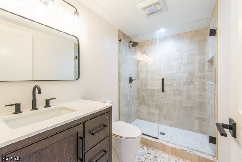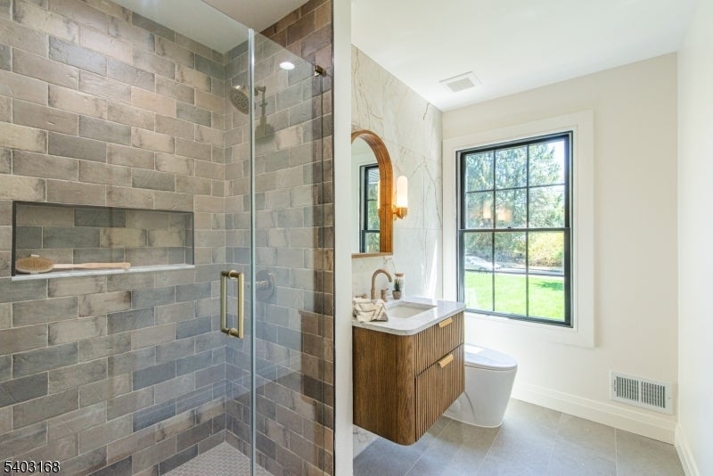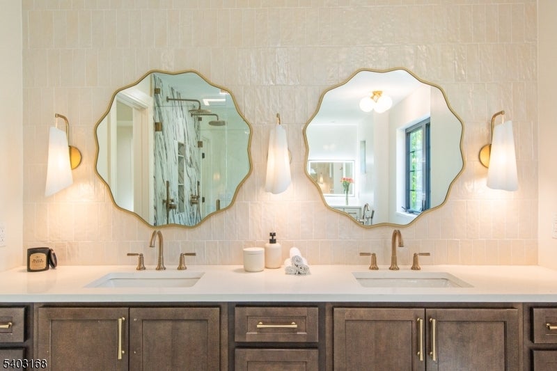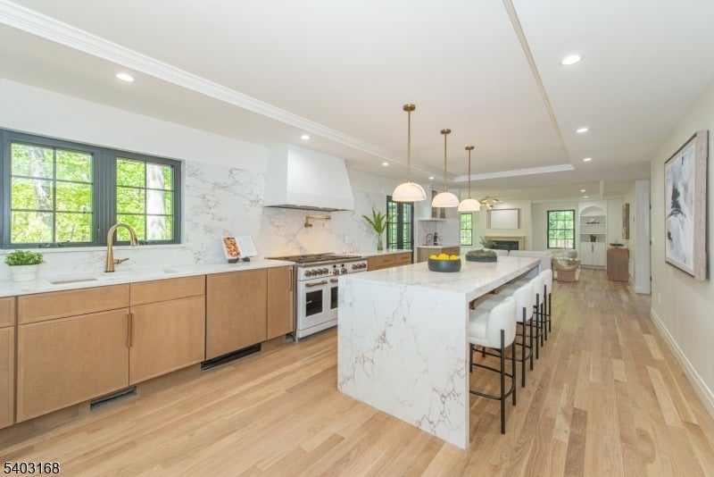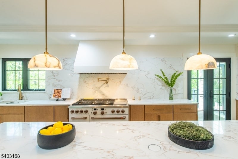 NEW & IMPROVED WITH BEAUTIFUL NEW SPACIOUS FLAT BACKYARD! Come see 6 Buttenheim, a 2025 custom-built dream home designed by Samaan Design Group & brought to life by Champion Estates. Located on a quiet cul-de-sac in the coveted Hill Section in the heart of Madison, this luxurious residence blends quality craftsmanship w modern elegance & smart innovation, only .7 miles to downtown, top-rated schools & NYC direct transit. Step into the 2-story foyer adorned designer tile leading to white oak hardwood floors that flow throughout. The chef's paradise eat-in kitchen features expansive waterfall island w breakfast bar, quartz backsplash & top-of-the-line appliances. The entertainer's family room features tray ceiling, travertine fireplace & access to large outdoor deck/patio overlooking the .7 acre wooded lot w endless possibilities. Upstairs, the serene primary suite offers tray ceiling, custom WIC & spa-like ensuite bath w walk-in shower & freestanding tub. 5 guest bedrooms add flexibility/privacy, including 1st floor & basement suites w full baths & a charming princess suite w WIC/private bath. Outside, the home stuns w two-toned siding & oversized 2-car garage. Sophisticated smart home features include immersive indoor/outdoor audio system w invisible speakers, automated lighting, touchscreen controls & more!