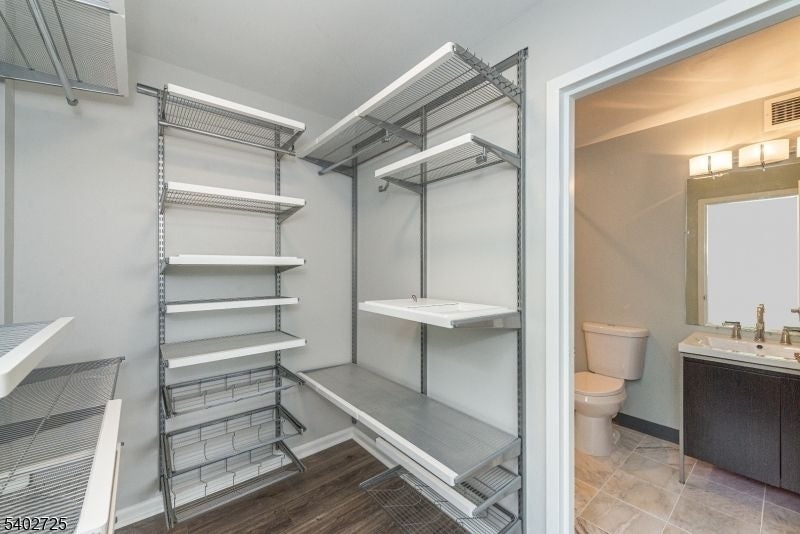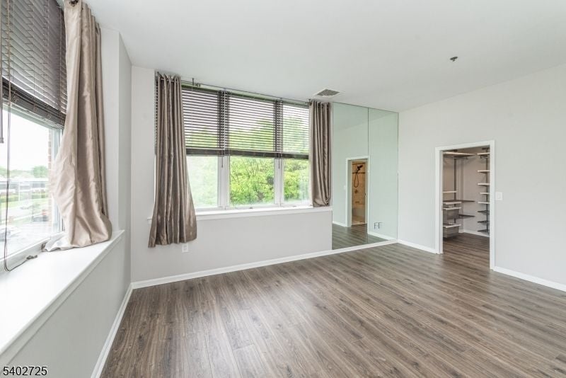This stunning two-bedroom corner residence occupies a top-floor position within the 240 building and offers a bright open layout with abundant natural light! Wide-plank flooring and high ceilings create an airy feel throughout the living spaces. The living room is generously sized and anchored by a wood-burning fireplace creating a strong focal point for both everyday living and entertaining. A mirrored accent wall enhances the sense of scale and reflects natural light across the space. The open layout flows comfortably into the dining area, highlighted by a contemporary chandelier. The kitchen features white cabinetry, granite countertops, a tile backsplash, and stainless steel appliances, offering a clean and functional workspace that connects easily to the main living area. The expansive primary bedroom offers seasonal views of the waterfall, a large walk-in closet with built-in shelving provides excellent storage and the bathroom includes a modern vanity and tub-shower combination. In-unit laundry adds everyday convenience! Neutral finishes throughout create a cohesive, move-in ready atmosphere. Residents of The Mill enjoy access to a fitness center, community room, in-ground swimming pool, tennis courts, walking and jogging paths, and the plaza deck overlooking the waterfalls, along with nearby shopping, dining, and convenient access to NYC transportation.