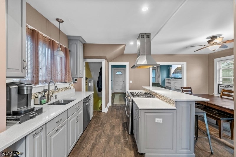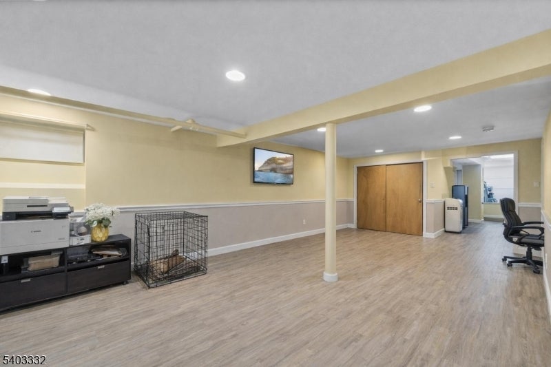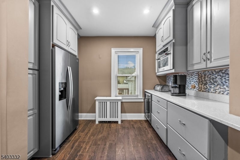 THIS IS A COMING SOON LISTING AND SHOWINGS START ON 1/3/2026! Welcome to this inviting living room which flows seamlessly into a stunning custom kitchen featuring tile flooring designed to resemble wood throughout the kitchen and dining area. The kitchen is thoughtfully designed with custom lower cabinetry, a stainless steel stove centered beneath a range hood, a striking tile backsplash, and a quartz-topped eat-in high-top bar ideal for casual dining or entertaining. A built-in wine fridge beneath the cabinetry completes this impressive space. The dining area opens through sliding glass doors to a backyard deck and porch, creating an easy indoor-outdoor lifestyle. Upstairs, you'll find three generously sized bedrooms, each equipped with ceiling fans, along with a full bathroom featuring beautifully tiled finishes and a shower-tub combination with tile extending all the way to the ceiling. Plush carpeting continues up the staircase and throughout the upstairs, including a full bonus room that offers flexible living space. The finished basement adds even more value with luxury vinyl plank flooring throughout, ample storage closets, and a convenient half bathroom with tile flooring. A dedicated laundry room houses the washer and dryer, keeping everything neatly organized. Additional highlights include a partially paver backyard, a roof less than three years old, a French drain with sump pump in the basement, and a brand-new garage completed in 2020.