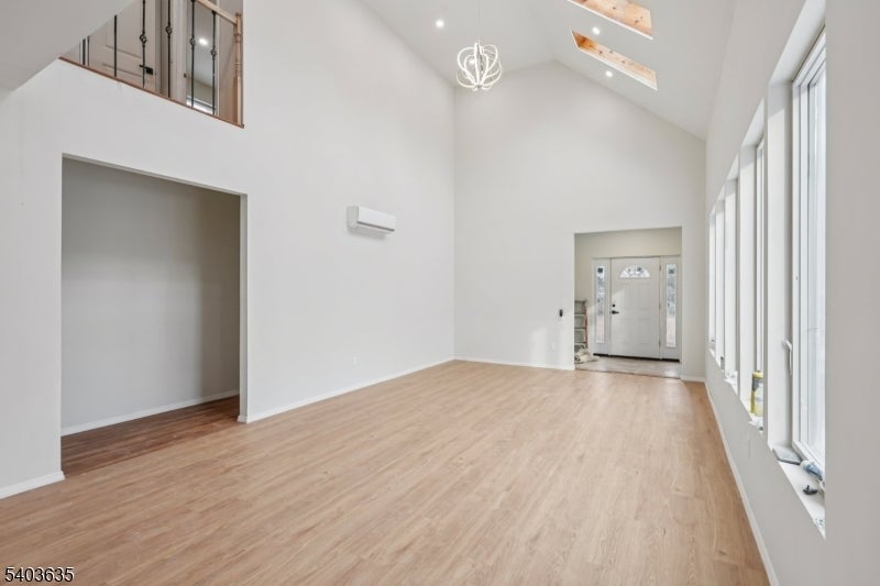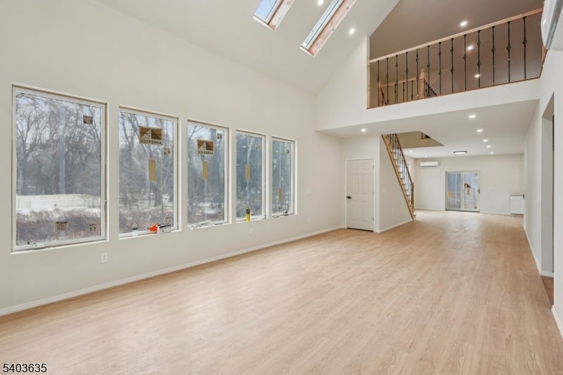 Welcome home to this newly constructed 3-bedroom, 3-bathroom Colonial nestled on a wooded lot in the heart of Wayne, where modern design meets everyday comfort. Step into the inviting entry foyer that opens to a bright, open main living space. The sunlit living and dining room combination features soaring ceilings, skylights, and expansive windows, creating an ideal setting for daily living and entertaining. The dining area flows seamlessly into the beautifully designed kitchen with custom cabinetry, a center island, and brand-new appliances perfect for gathering and making memories. Down the hall, the first floor primary bedroom offers a peaceful retreat complete with walk in closet, full bathroom and access to the private balcony. A second bedroom and full bathroom complete the main level. Retreat upstairs to discover a spacious family room, ideal for relaxing, hosting movie nights or entertaining. Sliding glass doors lead out to the balcony. A generously sized bedroom, full bathroom, and laundry room complete the level. The fully finished walk-out ground level provides exceptional bonus space, perfect for a den, home office, gym, or hobby room. Sliding glass doors from the kitchen lead to a rear deck, ideal for outdoor entertaining, grilling, or al fresco dining surrounded by nature. A 1-car attached garage completes this thoughtfully designed new construction home, offering space, style, and comfort indoors and out.