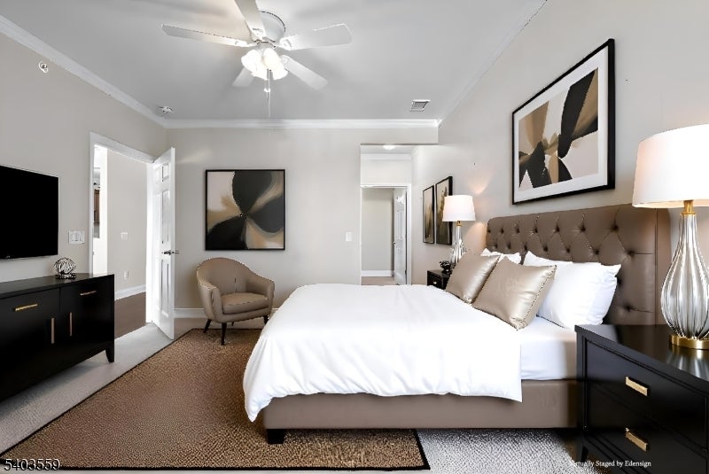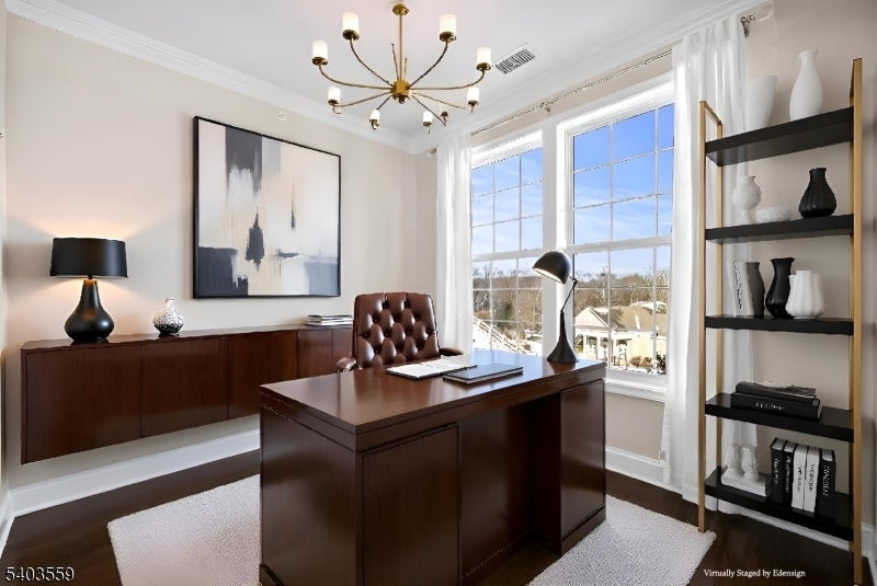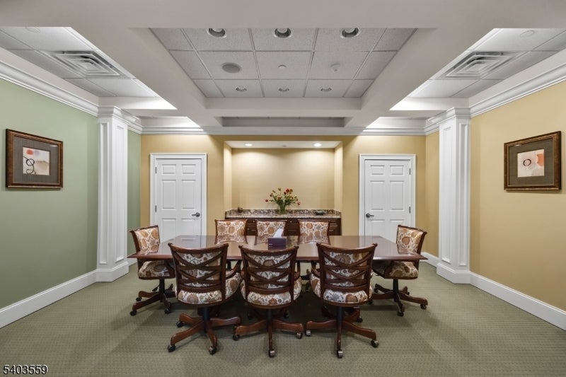 Refined third-floor Kittatinny model offering a sun-filled, open-concept layout with freshly painted interiors, soaring ceilings, and elegant crown molding throughout. The living and dining areas feature hardwood flooring and open to a covered balcony, creating a seamless indoor-outdoor retreat. A private den or study adds flexibility and sophistication to the living space.The kitchen is beautifully finished with granite countertops, stainless steel appliances, a breakfast bar, and generous cabinetry. The primary suite serves as a serene escape, complete with a sitting or dressing area, walk-in closet, ceiling fan, and plush carpeting. The spa-inspired en-suite bath features ceramic tile flooring, granite vanity, and an oversized shower. Additional conveniences include a tiled laundry room, powder room, and one assigned garage space with opener and storage.Residents enjoy an exceptional Greenbriar 55+ resort lifestyle, featuring elevators, elegant lobby spaces, clubhouse, fitness center, indoor and outdoor pools, tennis and bocce courts, scenic walking trails, and a full calendar of amenities, all just minutes from shopping and dining. One or more images have been virtually staged to show potential use of space.