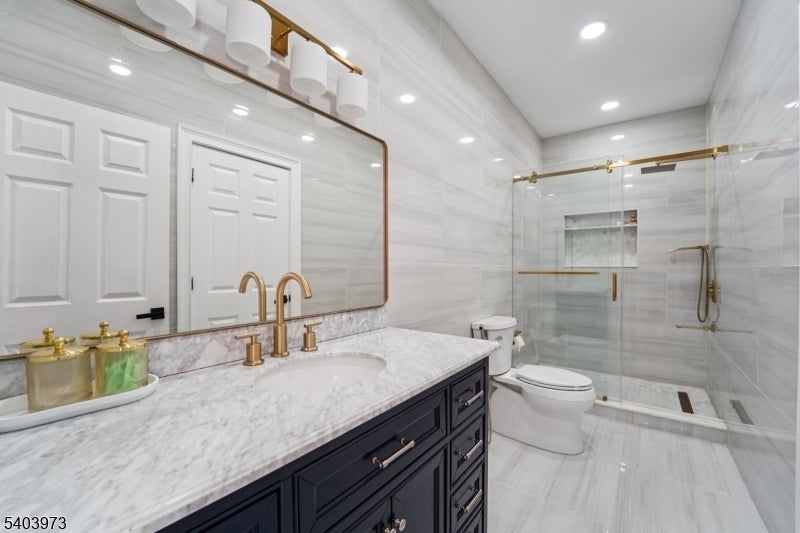 Welcome home to this expansive New Construction 5-bedroom, 3-bathroom Colonial, ideally situated on a quiet residential street. A dramatic two-story entry foyer sets an elegant tone and opens to beautifully proportioned living spaces designed for everyday comfort and entertaining. The gracious living room is filled with natural light from oversized windows and flows seamlessly into the formal dining room perfect for intimate dining or larger gatherings. The eat-in kitchen is the heart of the home, featuring custom cabinetry, double wall ovens, stainless steel appliances, and a center island with bar seating. A large cased opening connects the kitchen to the sunlit family room, where soaring ceilings, expansive windows, and a gas fireplace create an inviting atmosphere. First-floor bedroom and full bathroom offer accommodations for guests. Upstairs, a cozy den leads to the primary suite with walk-in closet and en suite. Three additional generous bedrooms, two with walk in closets, a full bathroom, and laundry room complete the level. The fully finished walk-out basement provides exceptional flexibility, ideal for a second family room, gym, home office, or hobby space. Outdoors, sliding glass doors lead to a spacious deck and patio, perfect for entertaining, grilling, and al fresco dining. The backyard offers ample space for recreation and features an above-ground pool for summer enjoyment. A 2-car attached garage and generous driveway parking complete this exceptional home.