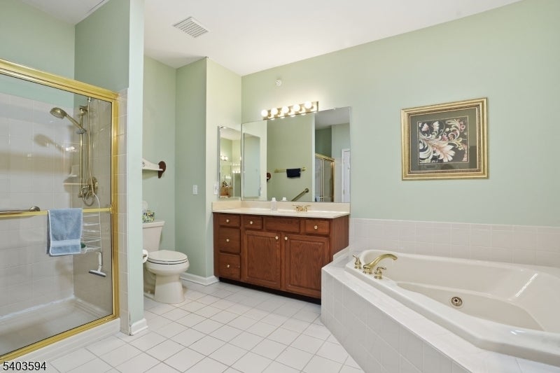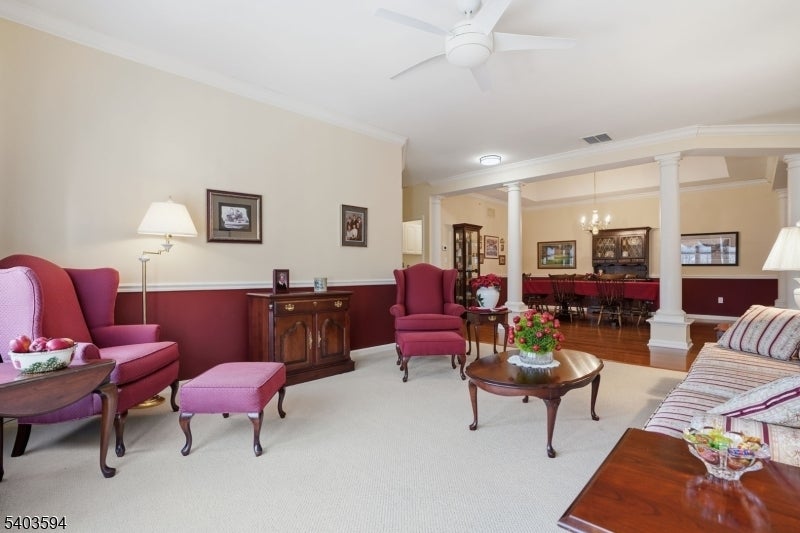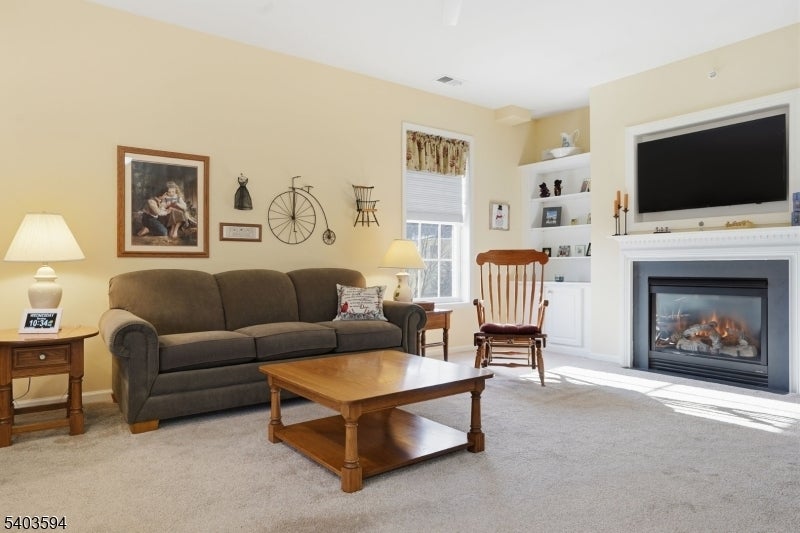 Welcome to effortless living in this beautifully appointed one-floor home within a vibrant 55+ community. This bright and spacious (largest Zinnia model) top 3rd floor residence features three generously sized bedrooms along with two full bathrooms located in one of the most prime locations within the development The inviting living room opens to a private deck an ideal space to unwind or enjoy your morning coffee. The eat-in kitchen flows into a spacious family room with a gas fireplace offering a warm and welcoming layout for daily living or entertaining. Elegant finishes throughout include wood flooring, crown molding, 9-foot ceilings, and custom built ins. The primary suite is a peaceful retreat, complete with a large walk-in closet, vaulted ceilings, private balcony with serene views, and a luxurious en-suite bath featuring a jetted tub & stall shower. Additional highlights include in-unit laundry, a spacious private storage closet in the garage, and underground parking with elevator access. The community itself is rich with amenities: outdoor pool, pickleball and tennis courts, or practice your bocce ball skills. Clubhouse features a billiards room and a modern fitness center. Electric vehicle charging stations are also available. Located near major highways, shopping, and dining, this home perfectly blends elegance, comfort and convenience in a resort-style community. Includes all TV's