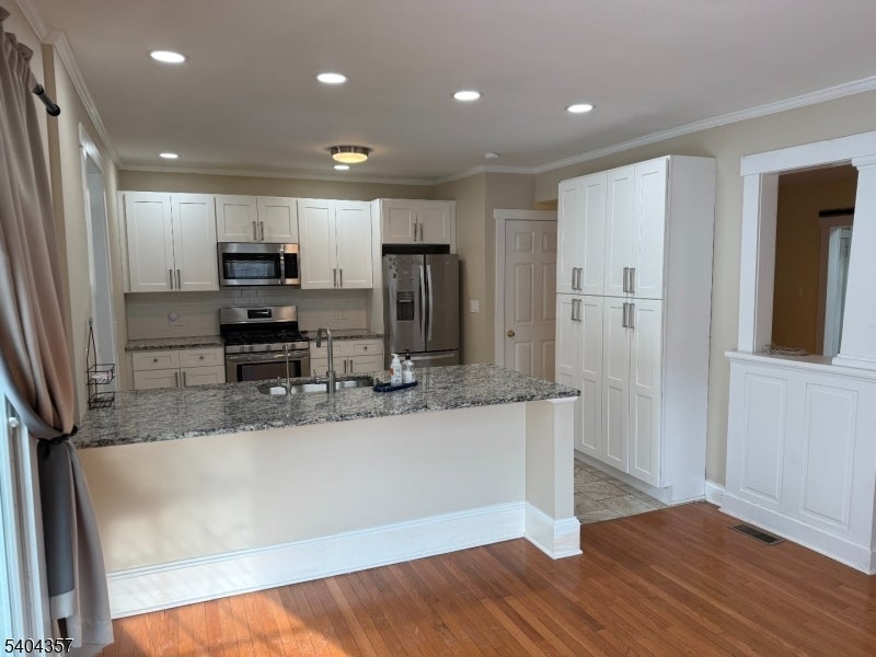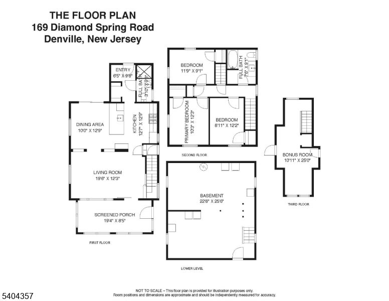 Classic Colonial featuring 3 bedrooms, enclosed front porch used as a family room, plus a finished bonus room on the third floor, along with 2 full bathrooms, and unfinished basement. Updates completed in 2022 include the kitchen, bathrooms, and HVAC systems. The kitchen offers updated cabinetry, breakfast island, and built-in microwave above the oven. The dining room receives excellent natural light and opens to the patio through sliding glass doors. Hardwood flooring extends through the first and second floors. Additional features include a detached 2-car garage and a convenient location near Downtown Denville's shops, dining, parks, and NYC-direct transit. According to public records, the property is not located in a FEMA-designated flood zone. Buyer to verify all information.