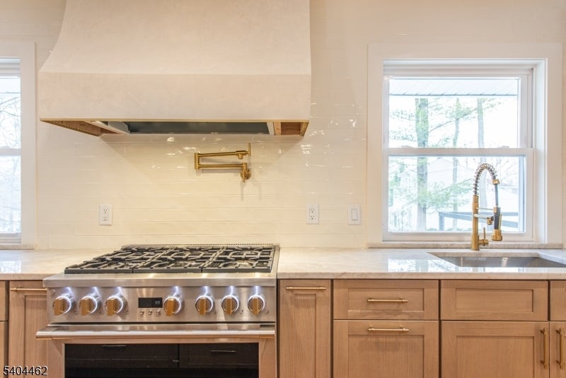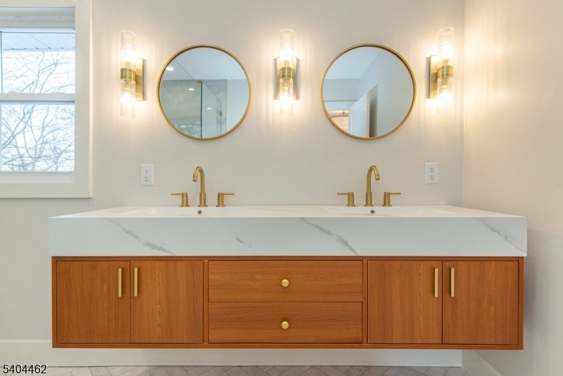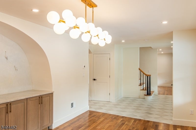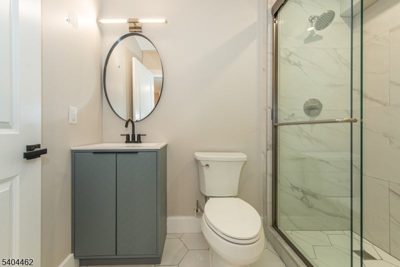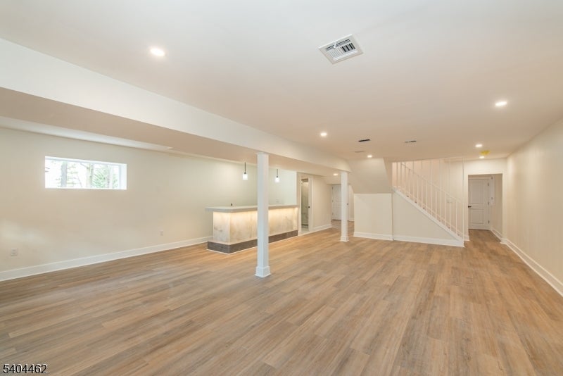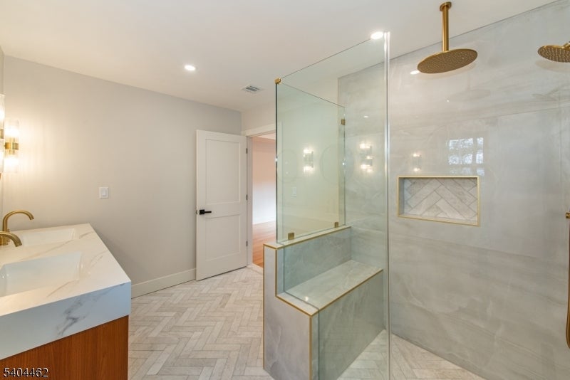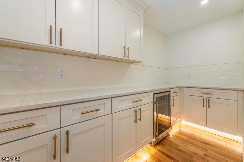 Sophisticated modern living in this renovated down-to-the-studs rebuild offering 4 bedrooms with a flexible 5th bedroom/office option and 4.5 designer baths. Set in one of West Caldwell's most desirable neighborhoods, this home blends elevated craftsmanship with a warm contemporary aesthetic just 19 miles from NYC. The main level features sun-drenched open-concept living, white oak flooring, designer lighting, and a custom plaster fireplace. The chef's kitchen showcases Taj Mahal quartzite, GE Monogram appliances, natural wood cabinetry, a walk-in pantry, custom plaster hood, and a built-in breakfast nook. A striking arched bar enhances the dining room for effortless entertaining. The luxurious primary suite offers a tray ceiling, walk-in closet, and a bath with Italian marble and a floating double vanity. Secondary bedrooms provide generous space, great light, and beautifully finished baths. The finished walk-out lower level adds a custom wet bar, full bath, and direct access to the covered patio, ideal for a gym, media room, or guest suite. Every major component is new, including plumbing, electric, roof, windows, siding, and 2-zone HVAC. Outdoor living features a MoistureShield deck, bluestone porch, new driveway with Belgium block, East Coast-installed sod, Rain Bird irrigation, and low-voltage lighting. A TRUE TURNKEY LUXURY home close to top-rated schools, downtown, shops, and restaurants.