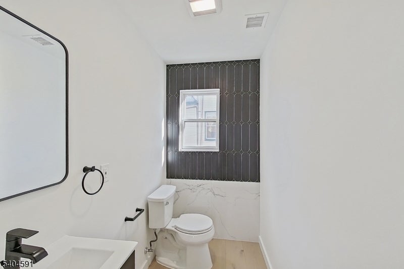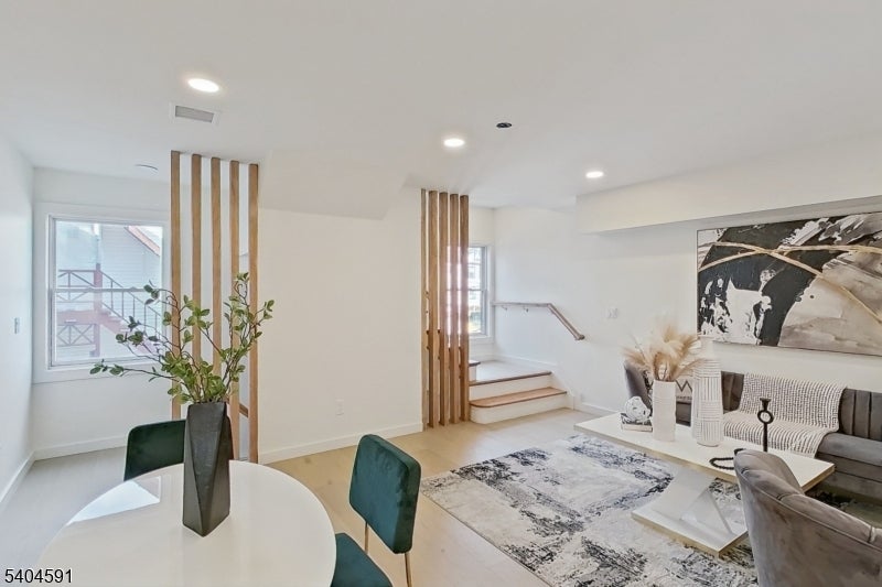 Javier Hill presents a rare opportunity to own a newly constructed townhome community in Passaic, NJ. This exclusive collection of eight thoughtfully designed two-story residences offers the space, privacy, and functionality of single-family living with the ease of modern new construction. Each home features a private, LED-lit entrance and direct interior access from a two-car garage with dedicated mechanical, storage, and laundry spaces. The main living level showcases a bright, open-concept layout ideal for entertaining and everyday living, highlighted by abundant natural light and a decorative pine wood partition that adds warmth while framing the staircase. The kitchen is both stylish and functional, featuring ceiling-height wood cabinetry with crown moulding, white granite countertops, open shelving above the island, full-size stainless steel appliances with range hood and pantry storage. A well-appointed half bath with timeless finishes completes this level. Upstairs, three generously sized bedrooms offer ample closet space, including a primary bedroom with a full walk-in closet. The full bathroom features modern fixtures, a deep soaking tub, glass shower doors, and a custom granite-topped vanity. Additional highlights include central heating and air conditioning, energy-efficient windows and doors and high-set windows for added privacy and natural light. Javier Hill delivers modern design, thoughtful details, and comfortable living crafted for today's lifestyle.
