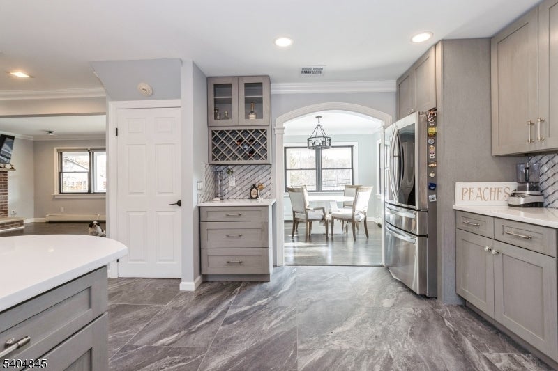 Beautifully updated Colonial w/ modern finishes & open layout, features rich hardwood floors, large windows for plenty of sunlight, elegant crown molding & trim details, & deck overlooking the private backyard, lovely landscaping & brand new pool. Located in Montville Township w/ Boonton mailing address. In the top rated Montville school system. Beyond the wrap-around front porch, the living space flows from the large living room w/ a wood-burning fireplace to the family room & a sunlit formal dining room w/ windows all around. A wide arched doorway brings you into the state-of-the-art kitchen equipped w/ quartz counters, tile backsplash, stainless steel appliances, a breakfast bar, generous cabinetry & full pantry closet. Off the kitchen is a convenient laundry room & a powder room. A doorway to the deck brings you outside to enjoy peaceful privacy in the perfect setting for cookouts, relaxing & entertaining. The second floor has a large primary bedroom suite featuring a vaulted ceiling, a picture window w/ a panoramic view of the countryside, a nice yard w/ a new pool, huge walk-in closet & ensuite bathroom w/ an oversized glass shower. Two additional bedrooms share a full bathroom w/ a dual-sink vanity. To top it all off, a sprawling finished basement offers loads of storage & recreation space. There is also a detached garage & a long driveway for extra parking. Close to major highways, transportation, shopping, parks, schools, & places of worship.