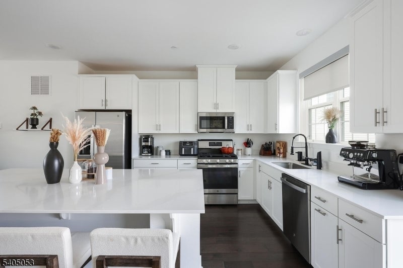 Don't miss this rare opportunity to own a beautifully maintained end-unit Pershing townhome in the sought-after Valley View Park community! Offering over 2,400 square feet of living space, this home features a 2-car garage with its own private (non-shared) driveway and a versatile bonus room that opens to a private outdoor area. The open concept main level is filled with natural light, thanks to the end-unit location and includes 9 foot ceilings, wall-to-wall hardwood floors, and seamless access to a 2nd story deck, ideal for everyday living and entertaining. The kitchen is both stylish and functional, featuring Silestone quartz countertops, a large center island, shaker style cabinetry and stainless steel appliances. Upstairs, the serene primary suite offers an en-suite bath with a double vanity and quartz countertop. Two additional bedrooms share a well appointed bath, also with double vanity. Recent upgrades make this home truly move-in ready, including custom blinds, a custom 3-dimensional wood trim accent wall in the family room, carpeted stairs, professionally designed closet organizers and a new water softener installed in 2025. The low-maintenance home also includes 9 years remaining on the NJ new construction warranty, a rare benefit for resale. Ideally located just minutes from shopping and dining on Rt. 10, Rt. 287 and NYC Transportation.